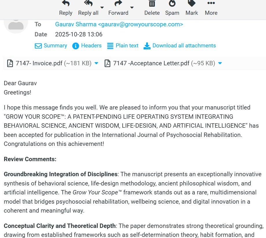 Grow Your Scope™: A Patent-Pending Life Operating System Integrating Behavioral Science, Ancient Wisdom, Life-Design, and Artificial Intelligence