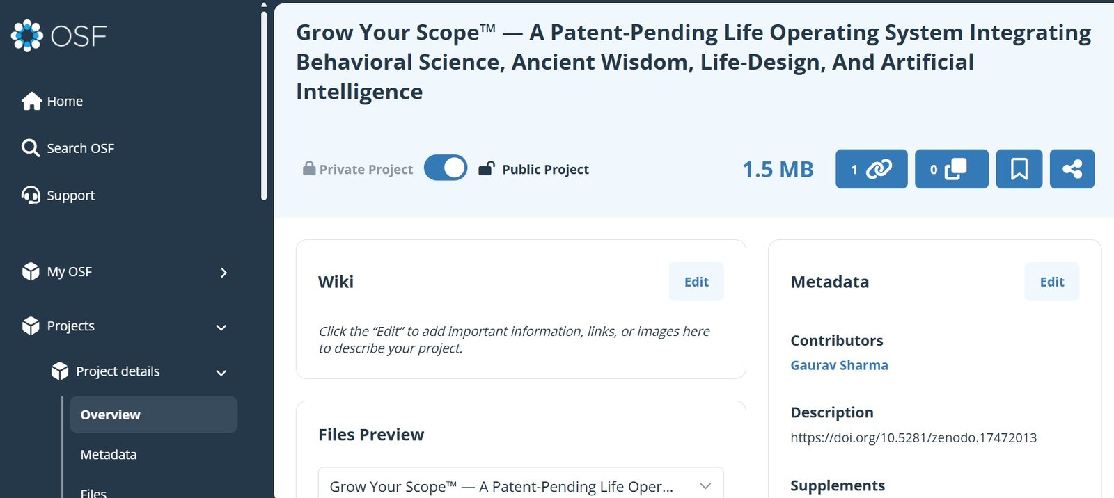 The conceptual groundwork and diagrams for Grow Your Scope have presence on OSF, increasing academic credibility worldwide.